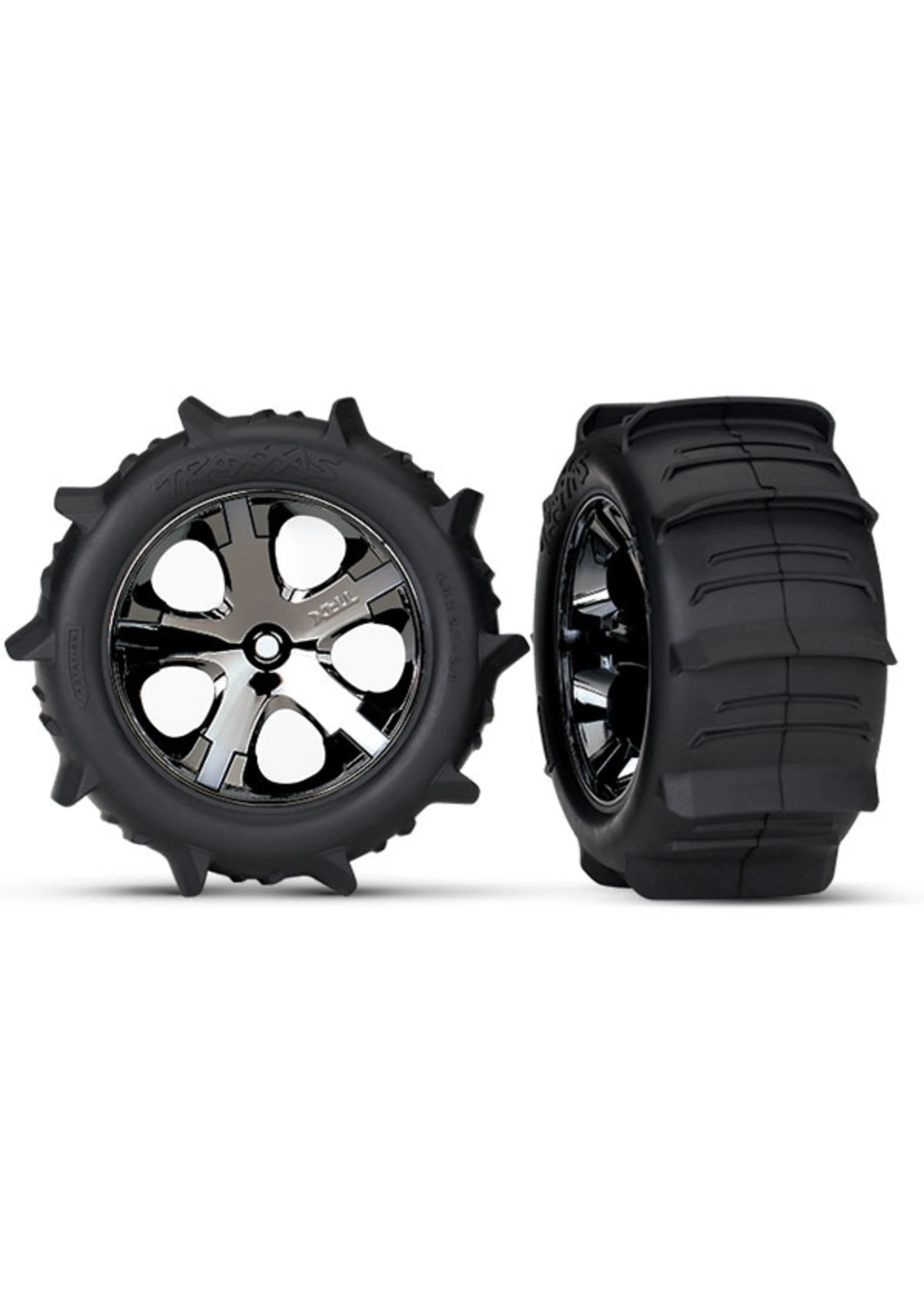 Traxxas 3776 – All-Star Black Chrome Wheels / Traxxas Paddle Tires