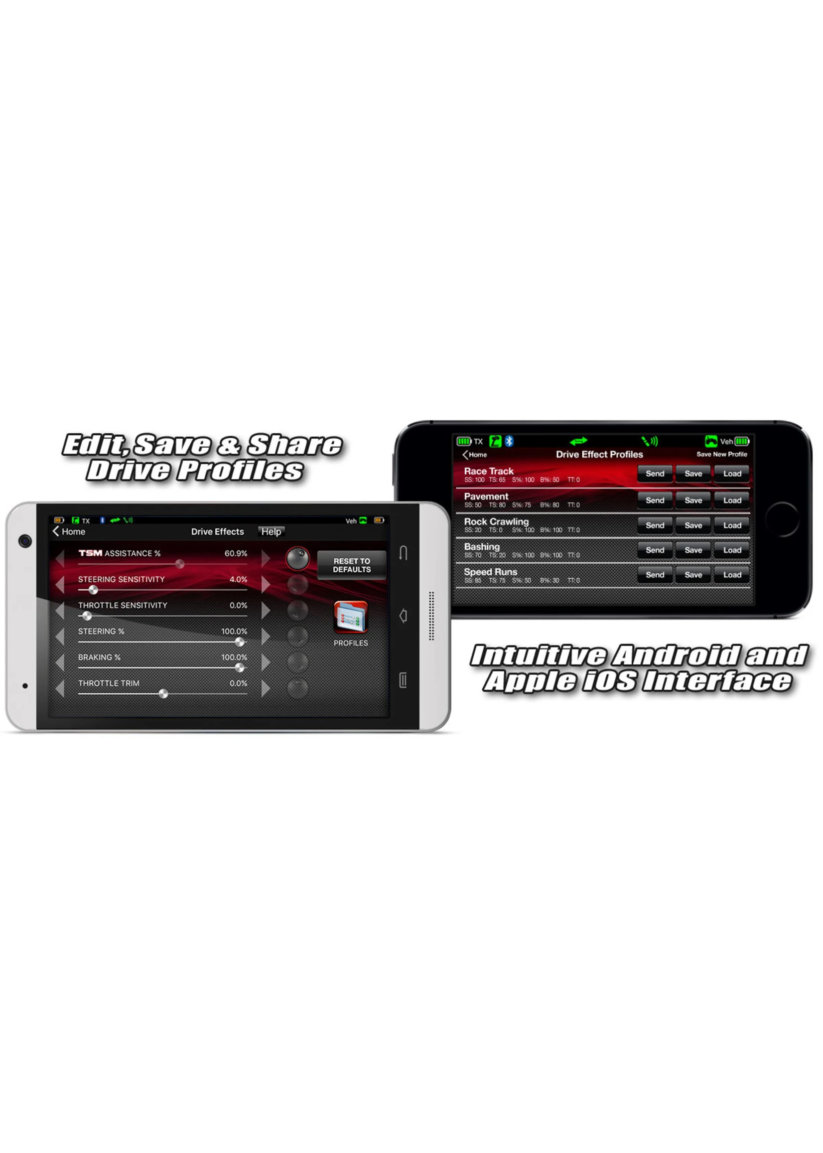 Fine-tune your model with an Android or Apple device. The Traxxas Link app provides an intuitive user interface to make and save your custom settings in just seconds. Reverse a servo direction, set servo end points, or fine tune the steering rate or braking percentage with just a few taps of the screen.