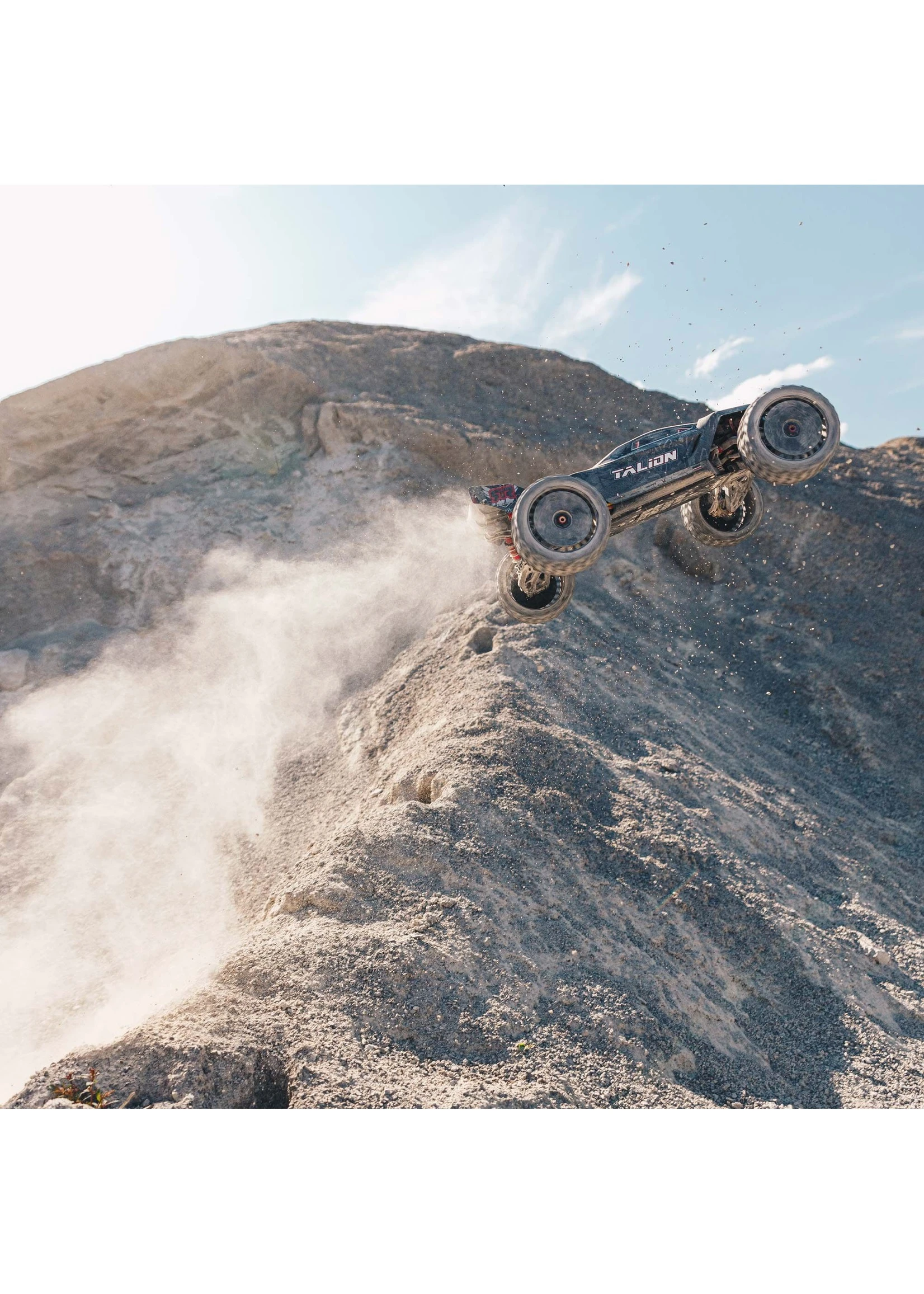ARRMA® engineers have given the TALION™ 6S BLX Speed Truggy the Extreme Bash premium treatment! EXB hardened components increase toughness everywhere it counts, resulting in a 1/8 scale speed basher with virtually unstoppable strength. It’s also the first ARRMA® EXB vehicle that comes ready-to-run with a Spektrum™ AVC® radio and Spektrum™ 6S brushless power system — giving you the muscle and control to bash over brutal terrain at 70+ mph speeds.