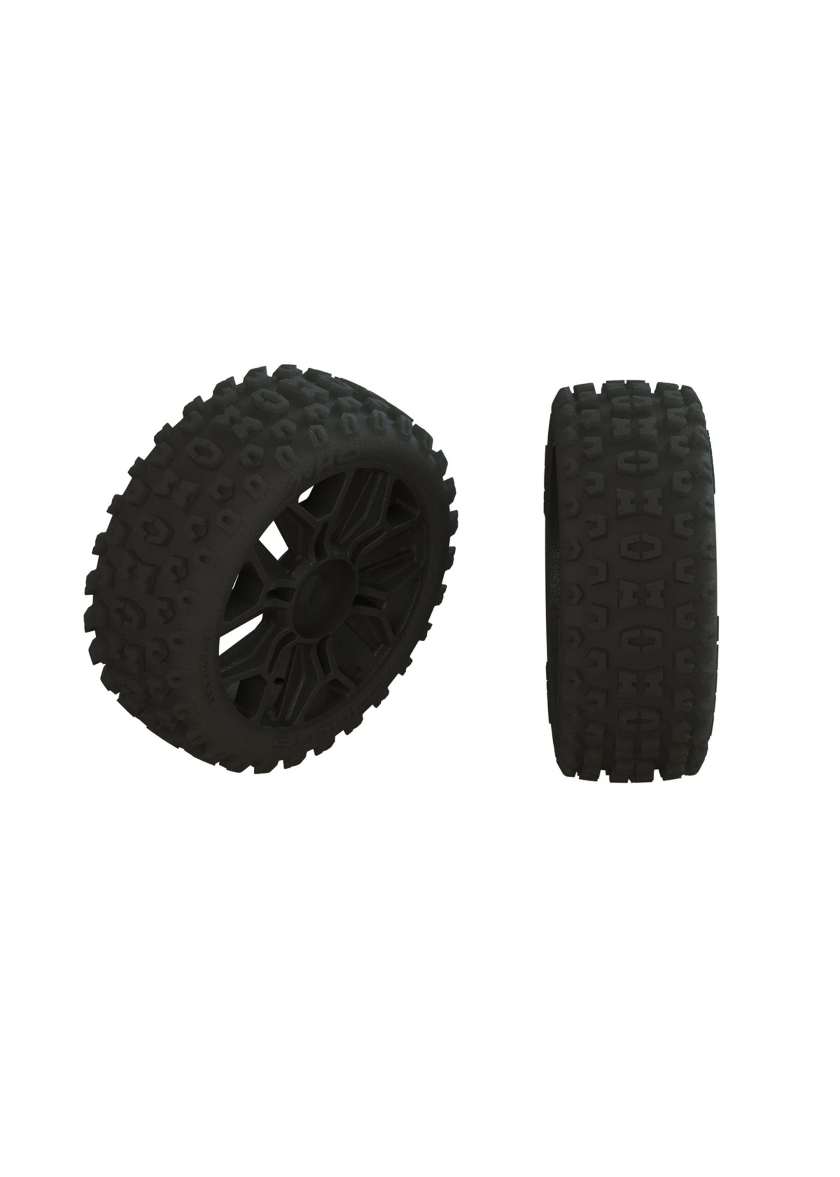 These high-quality dBoots 2HO buggy tires, mounted on ARRMA wheels, are direct replacements for your kit items.