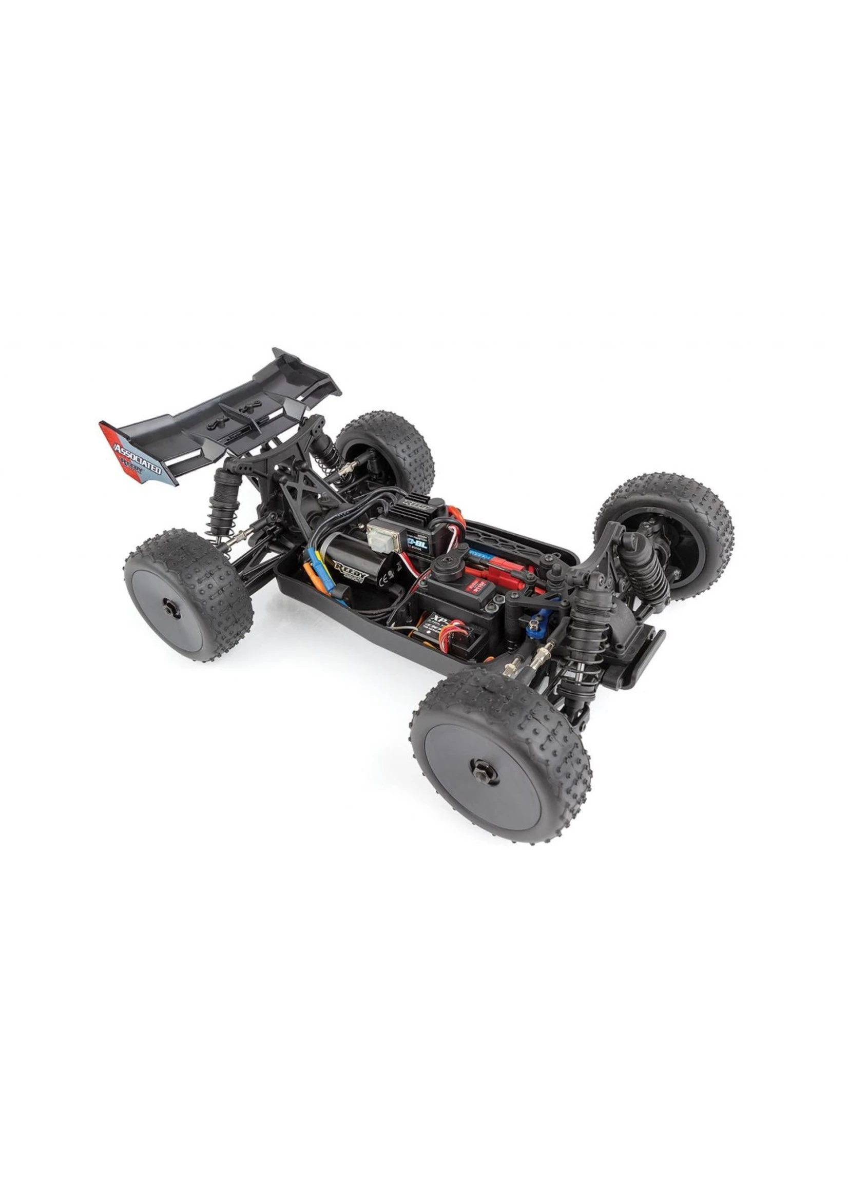 Team Associated’s 1:14 scale REFLEX 14B 4WD electric buggy comes out of the box already assembled, with a Reedy Power brushless speed control and motor, high-torque digital steering servo, and 2.4GHz radio system. With all that power at your disposal, the buggy’s design effortlessly channels it into 4WD fun! The adjustability offered by the turnbuckles, caster blocks, and rear hubs make the REFLEX 14B ready for any terrain you can throw at it. Additional features include three sealed differentials, aluminum steering rack, and lightweight aluminum center driveshaft. Adding a battery pack to the REFLEX 14B RTR, you can now have big performance in a small-scale Ready-to-Run package!