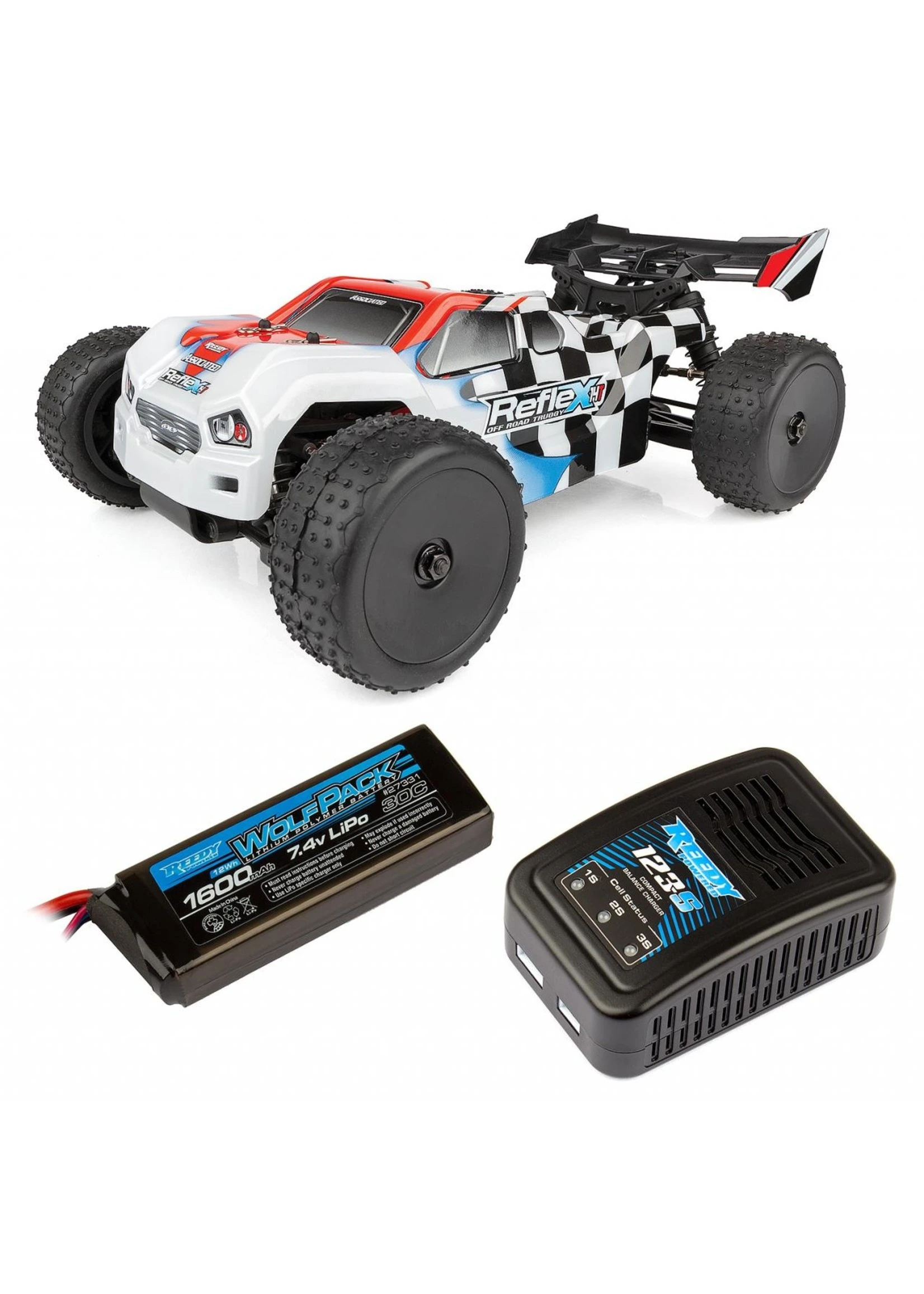 The #20176C REFLEX 14T Truggy RTR Combo has the added benefit of a Reedy 123-S Compact Balance Charger and Reedy LiPo battery pack included!