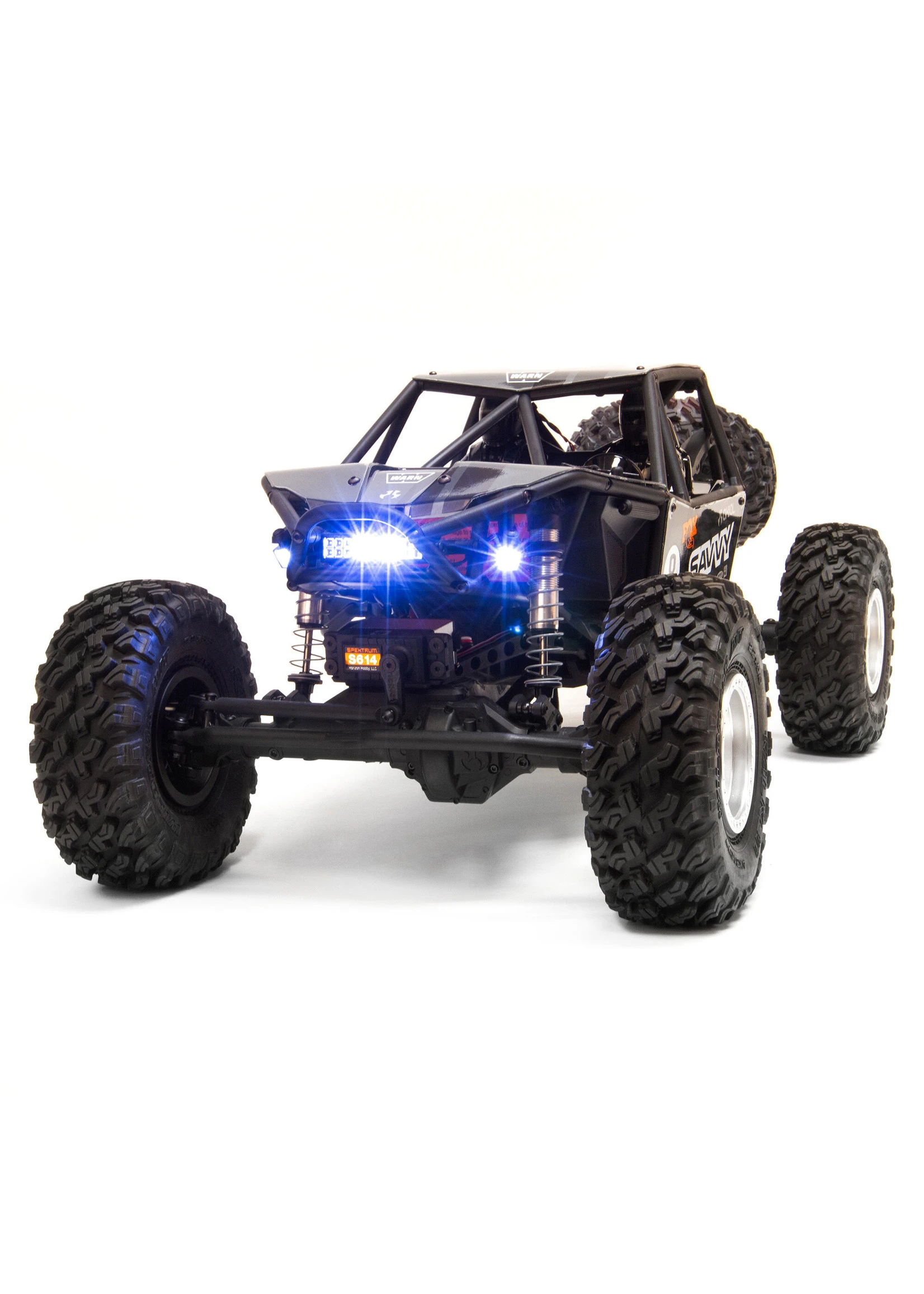 The included 3S LiPo capable Dynamite® AE-5L ESC with IC3™ connectors features adjustable drag brake and a light controller with dual LED outputs to accommodate the new LED headlights and tail lights. The RR10 Bomber rock racer now features two forward-facing white LEDs, two white LEDs on the front for rock lights, and a new rear LED light bar with two red LEDs.