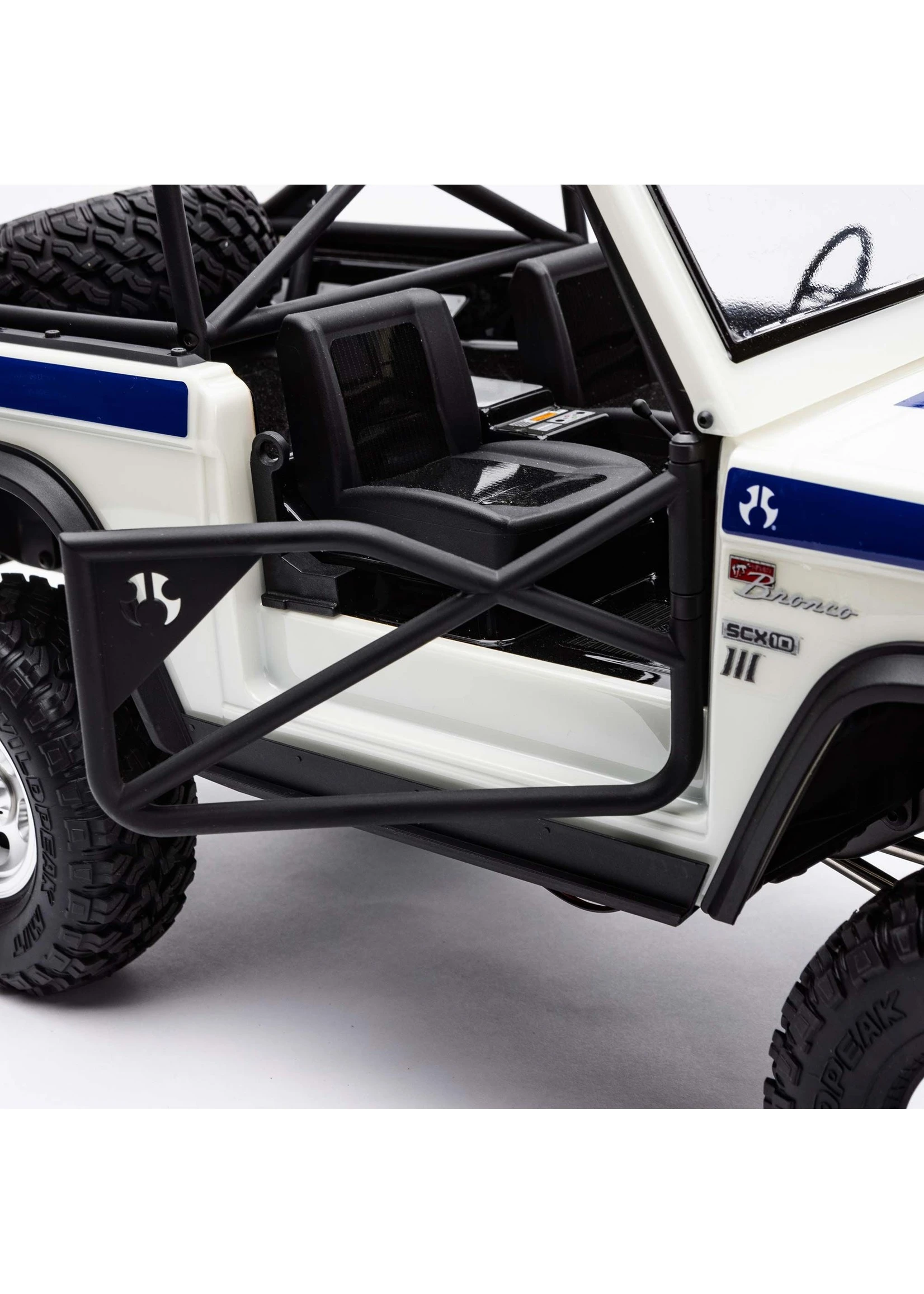 - Officially licensed Early Ford Bronco body with realistic, molded tube cage, functional tube doors and many authentic scale details