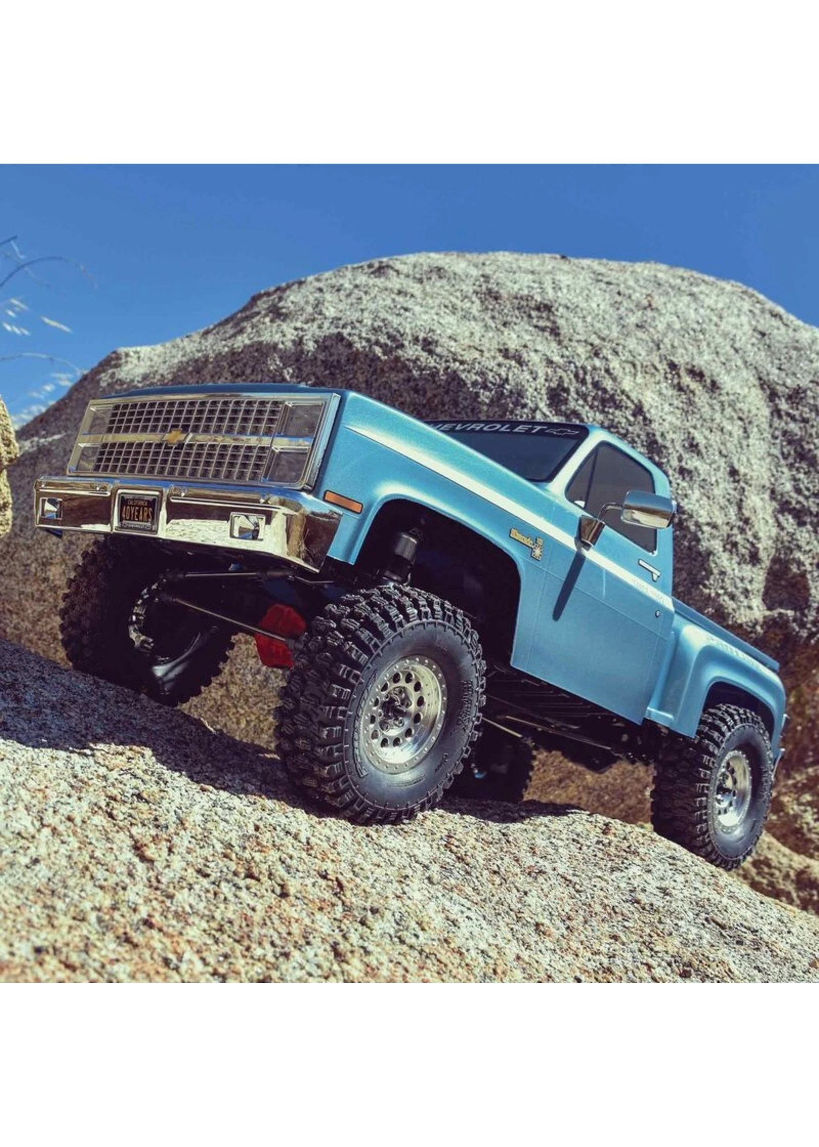The Axial® team has admired the quality and performance of Pro-Line® brand products ever since we began making RC rigs more than 15 years ago. Now we’re excited to help celebrate Pro-Line Racing’s own 40th anniversary with our Limited Edition 40th Anniversary SCX10™ III Pro-Line 1982 Chevy K10! Trail-ready right out of the box, this highly collectible, ready-to-run 4X4 crawler comes with many of your favorite Pro-Line upgrades — including Big Bore Scaler shocks, Rock Shooter aluminum/composite wheels, and Hyrax G8 Class 1 tires. It’s topped off with an exclusive, factory-painted Pro-Line 1982 Chevy K10 body that’s tricked out with such scale details as a molded grille, front and rear bumpers, brake lights, and two-piece side mirrors. Each Limited Edition chassis has a unique production number laser-etched into the motor plate. An essential item for fans and collectors, the Limited Edition SCX10 III Pro-Line 1982 Chevy K10 RTR makes a striking addition to your display shelf. It also comes equipped with proven Axial SCX10 III engineering for successfully taking on the most taxing trails. The stiff SCX10 III steel C-channel chassis reduces frame flexing and increases suspension movement precision. The single-speed transmission has full ball bearings and all-metal internal gears for strength and durability. To complete the ready-to-run package, the Axial team includes a perfectly matched brushed power system and Spektrum™ SLT3 radio. Just add your choice of battery and charger. Only 1,982 of these Limited Edition crawlers will be produced, so Axial and Pro-Line fans everywhere should act fast. Get yours before they’re gone!