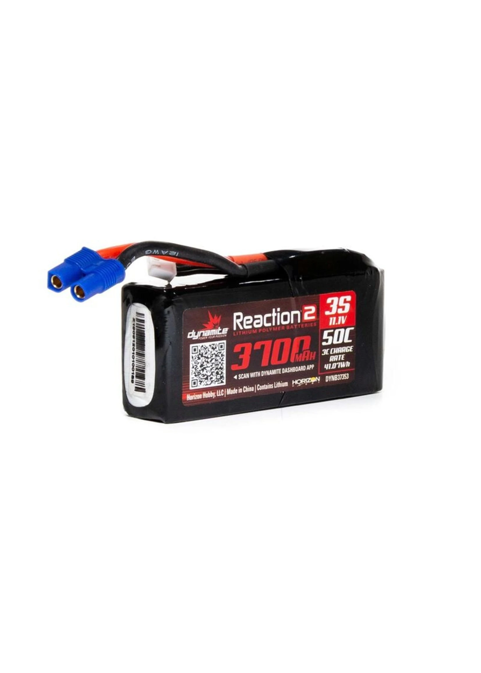 DYNB37353 – 11.1V 3700mAh 3S 50C Reaction 2 LiPo Battery: EC3