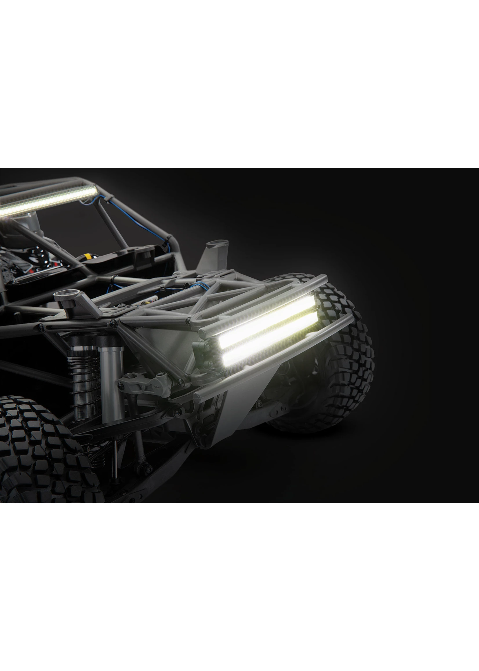 The Unlimited Desert Racer combines Pro-Scale™ performance with extreme 6s power for the most thrilling RC driving experience possible. The UDR™ drives like a real desert truck because it’s engineered like a real desert truck. A 4-link solid rear axle provides huge suspension travel with authentic driving dynamics. From the cantilever sway bars and high-voltage lighting system to the GTR shocks, Traxxas accurately reproduced a true desert racer in both form and function.
