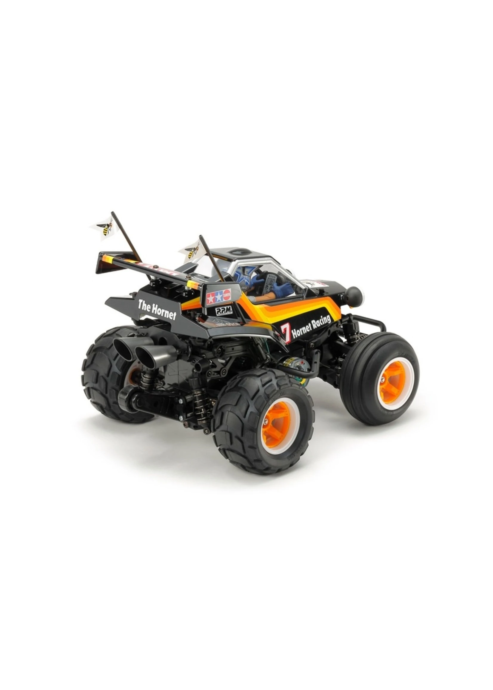 The original Hornet needs little introduction. It was a Tamiya legend which inspired legions of fans since the 1980s. For many, it was their very first introduction into the world of radio control assembly kits. The original Hornet is still among Tamiya’s best-selling kits to this day. Now the legend is re-imagined as the Comical Hornet, with a new body inspired by the famous original. The re-imagined body, which includes a newly designed driver figure, sits on a new and dedicated variant of the proven off-road chassis: the WR-02CB.
