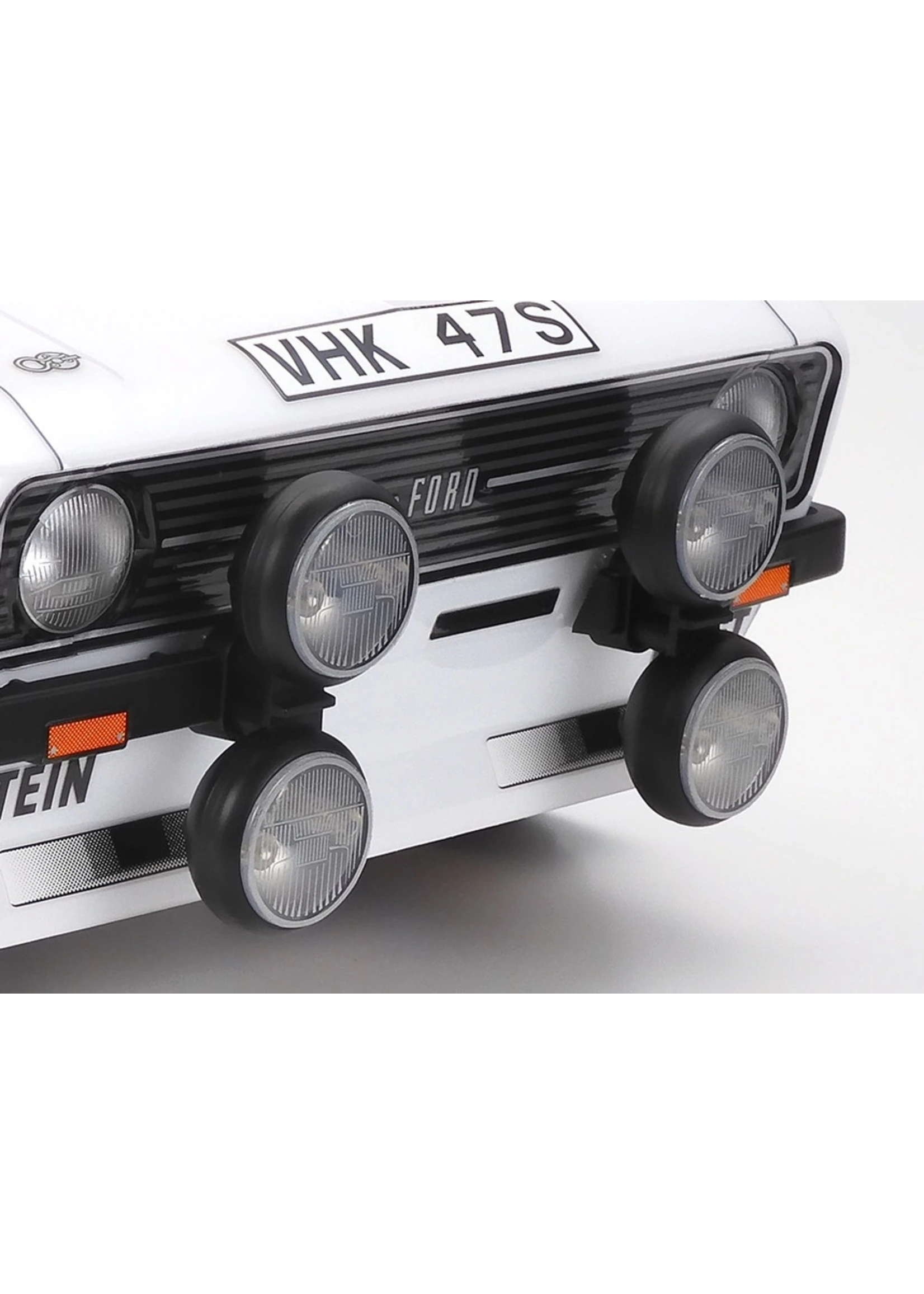 This R/C model assembly kit recreates the classic Ford Escort Mk.II in rally racing form. It was a RAC Rally Champion from 1975-1979. The pre-painted body sits on top the Tamiya MF-01X chassis that is capable both on asphalt and flat dirt surfaces.