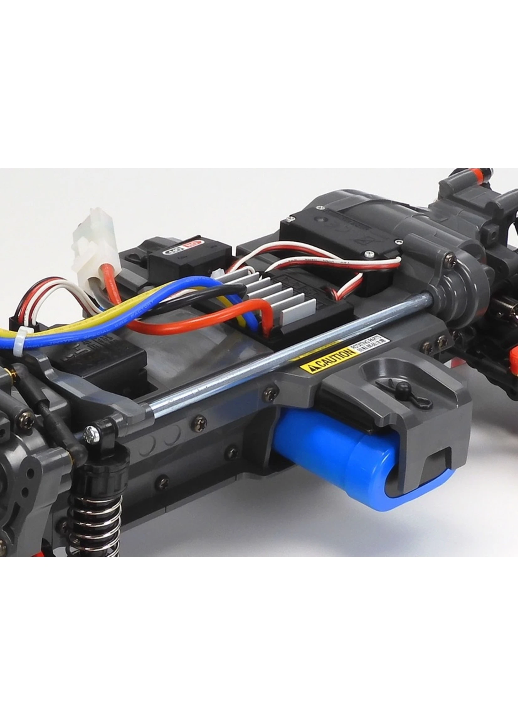 - Power from the rear mounted motor is transmitted by gear differential to the rear wheels, and via a propeller shaft to the front. The chassis can be converted to S and M wheelbases with separately sold propeller shafts.