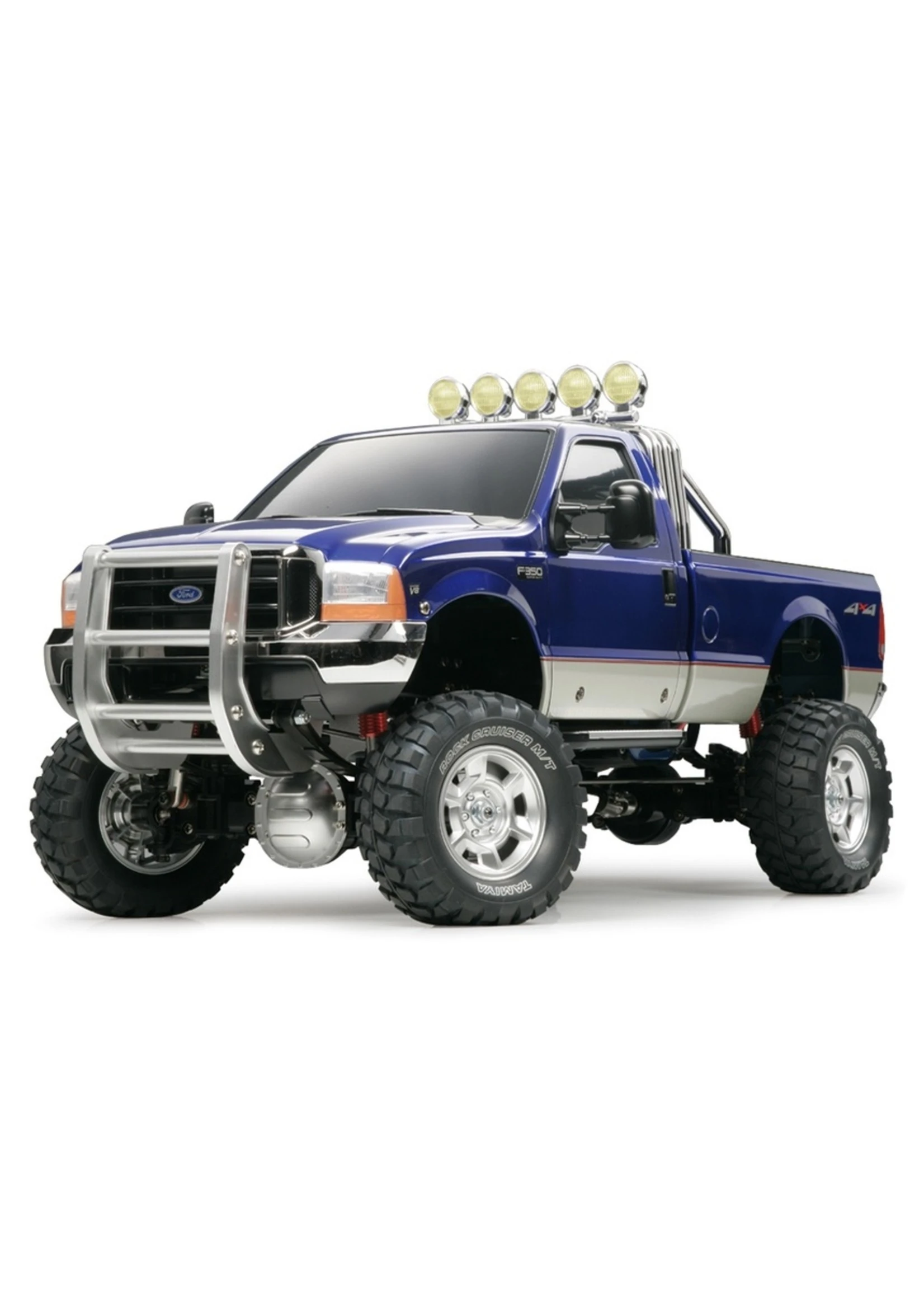 The Ford F-350 is one of America’s most popular pick-up trucks. Tamiya has faithfully recreated this icon as part of its most advanced and extensive lineup of electric radio control cars. Tamiya spared no expense in developing this truck to be the most realistic ever, with a ladder frame chassis and 4WD system just like the actual truck. The 3-speed transmission provides lots of enjoyable driving options and a plethora of metal parts such as the front guard, leaf springs, and aluminum friction dampers make for a very interesting assembly kit. The large diameter tires provide impressive ground clearance and enhances the realistic resin body’s muscular look. Metal-plated parts for the roll bar, front grill, road lights, front/rear bumpers, and muffler provide extra detail highlights throughout the model as well.
