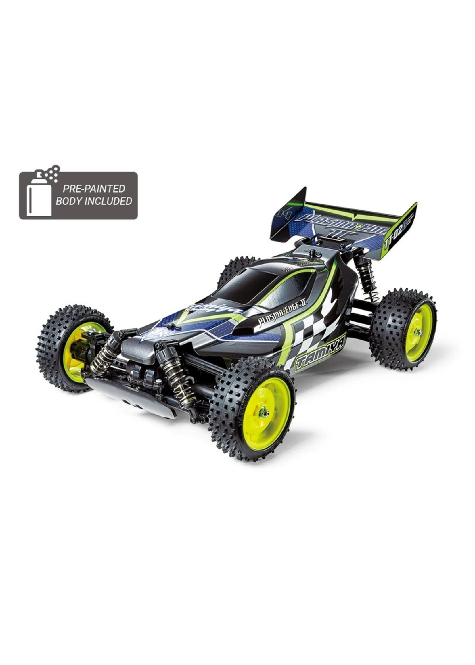 This exciting shaft-driven 4WD R/C buggy assembly kit creates the Plasma Edge II. The Limited-Edition version seen here comes with Gun Metal color finish. The body sit on top of the TT-02B, which is a dedicated off-road buggy chassis that offers hassle-free assembly and maintenance, as well as superb controllability.