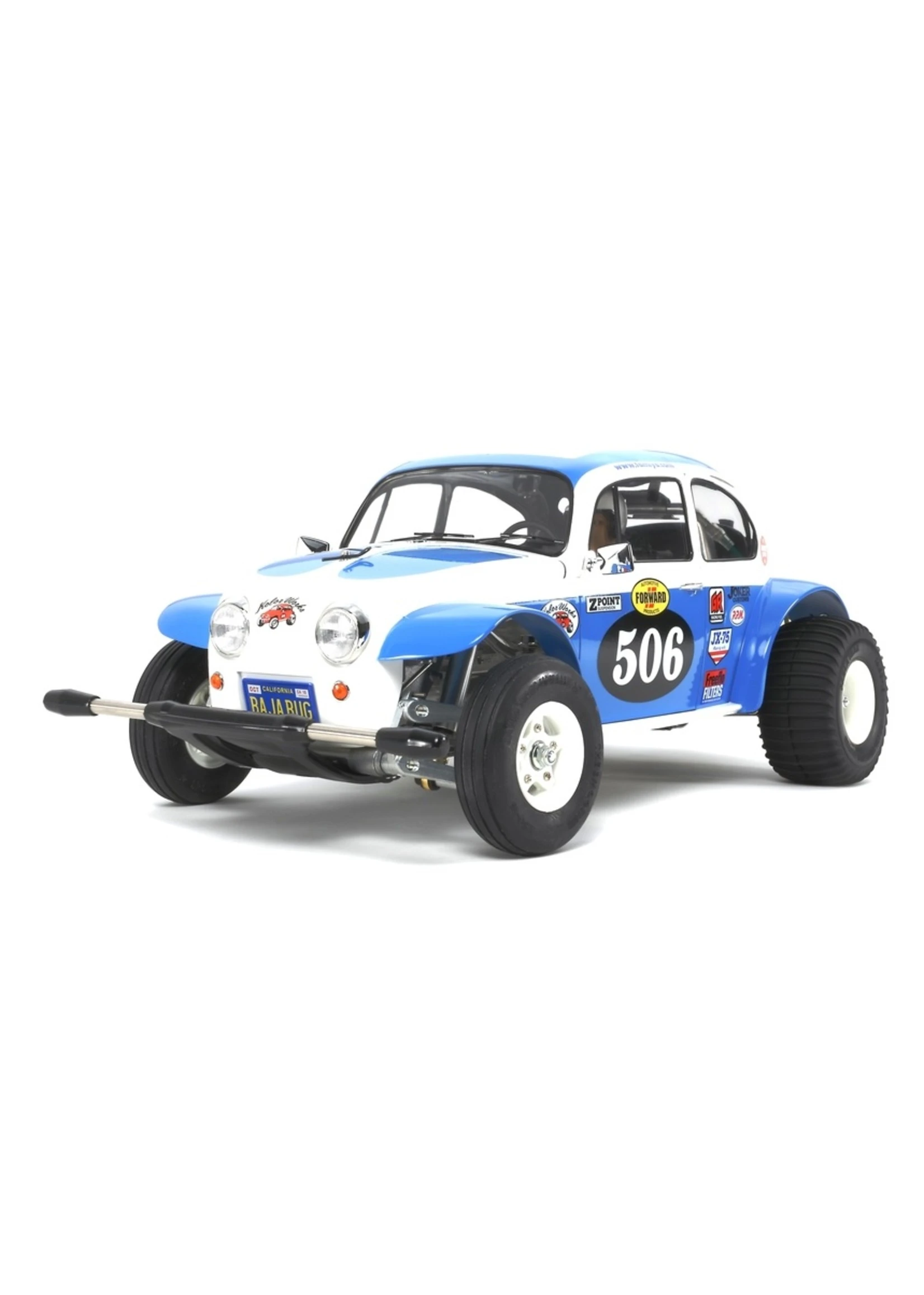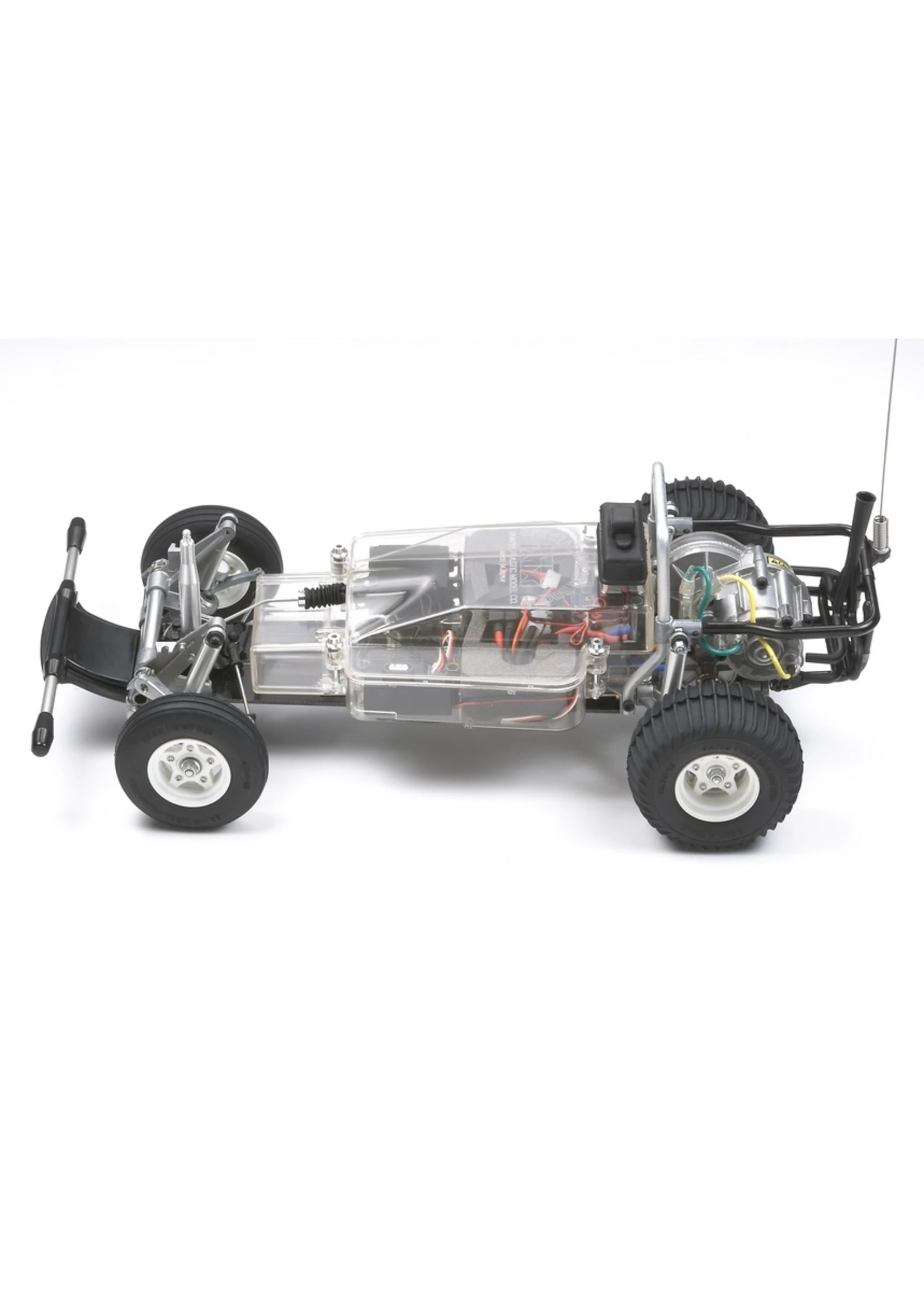 Originally released in 1979, the R/C Sand Scorcher was greatly received from fans around the world with its humorous form and superb mechanism. Keeping true to the basic layout of the original while incorporating many refined parts, this re-released version of the Sand Scorcher will remind you of the original. This model realistically reproduces the unique form of the buggy which was seen at the one-make race at the “Baja 1000” in California, USA. The body is molded in white polystyrene and can be painted with Tamiya plastic model paints. The rear-wheel drive 2WD chassis features realistic and aggressive driving performance that will no doubt excite you.