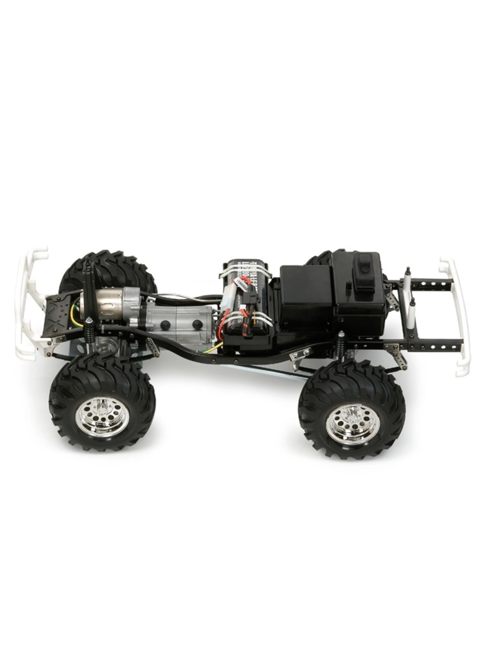 This electric R/C assembly kit reproduces the 4WD Toyota Hilux Pick-Up (RN36), which enjoyed wide popularity in the US and Japan during the 1980s and is still adored by many fans today. The model features a ladder frame like the actual vehicle, Type 540 motor, 3-speed transmission, and an abundance of metal parts for a high level of realism. Its live axle suspension features metal axle housings, leaf springs, and oil dampers while a metal front under guard helps the model take on tough off-road conditions. A highly detailed injection-molded body and large 123mm diameter tires also gives the model a stylish, high-lift appearance.