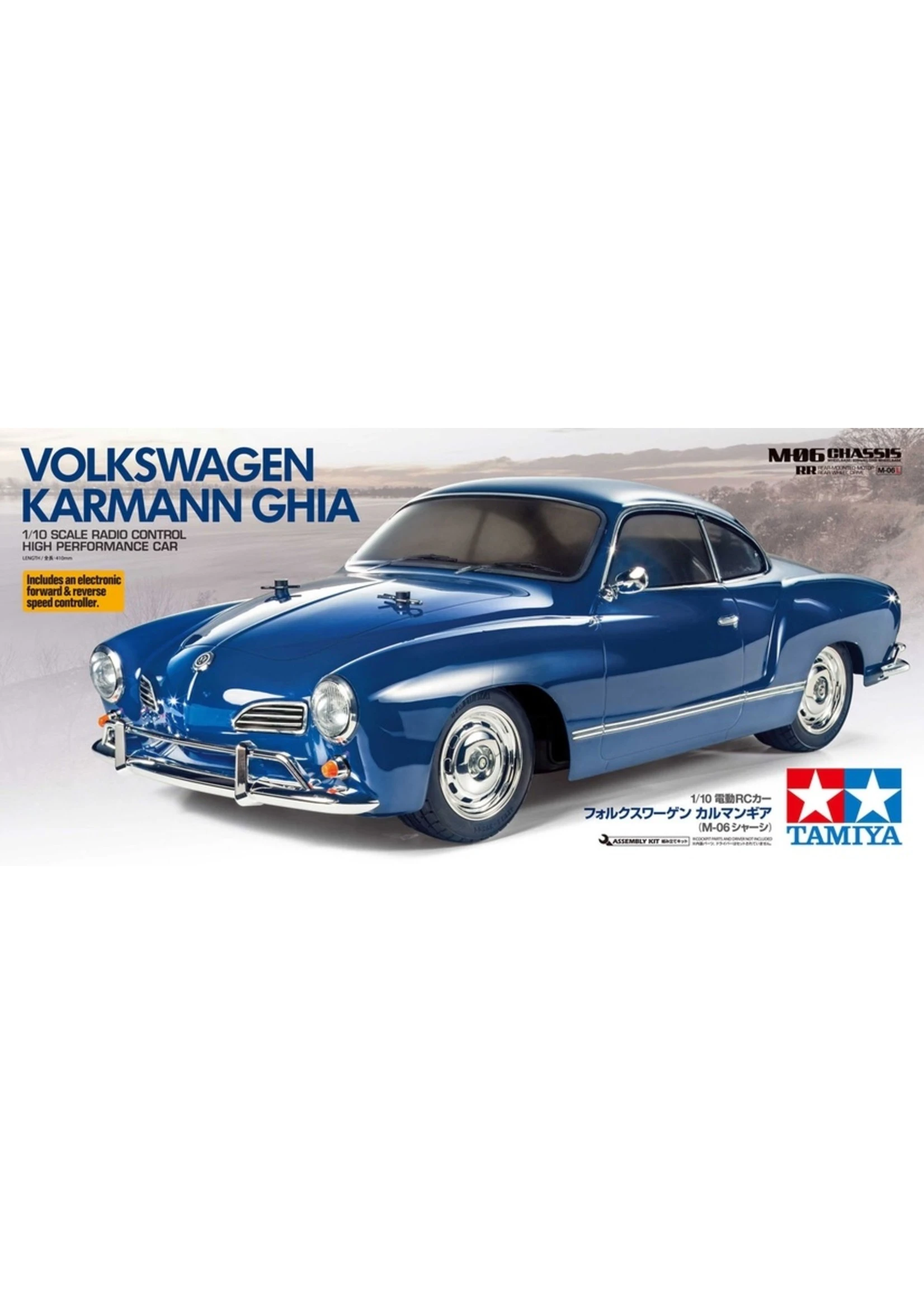 Tamiya is no stranger to recreating classic cars from different eras! This specific kit recreates a true classic in the form of the Volkswagen Karmann Ghia. The Karmann Ghia was a stylish coupé based upon the same platform as the legendary Beetle. Its body was designed by Italian firm Ghia and manufactured by the German company Karmann. The polycarbonate body in this replica sits on top of the Tamiya RWD M-06 chassis.