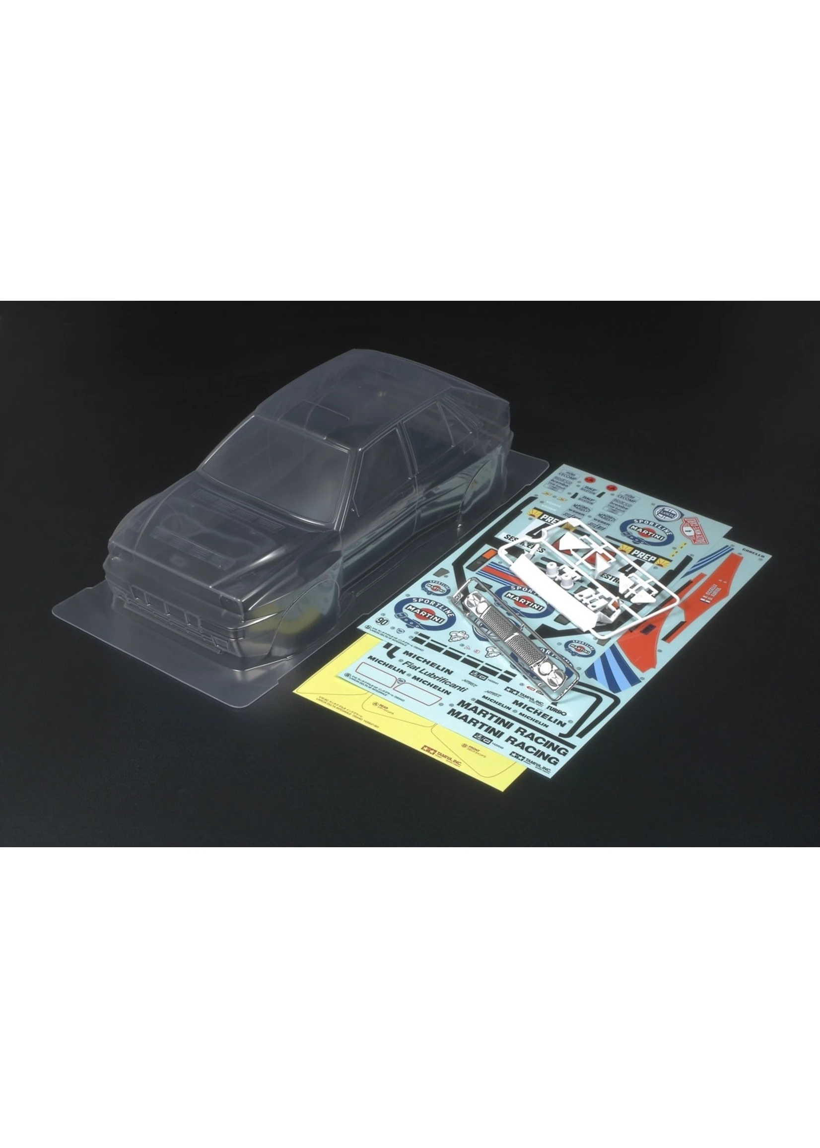 Durable clear polycarbonate body captures the distinctive shape of the Lancia Delta Integrale.