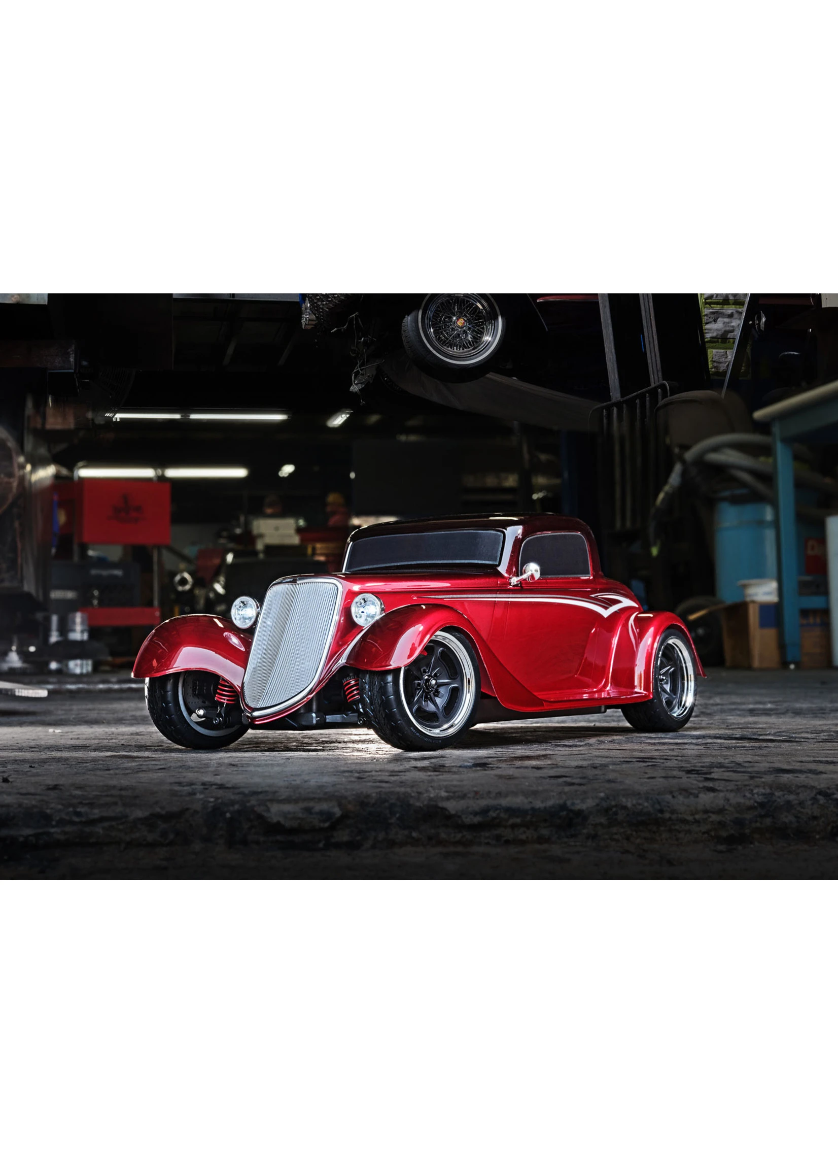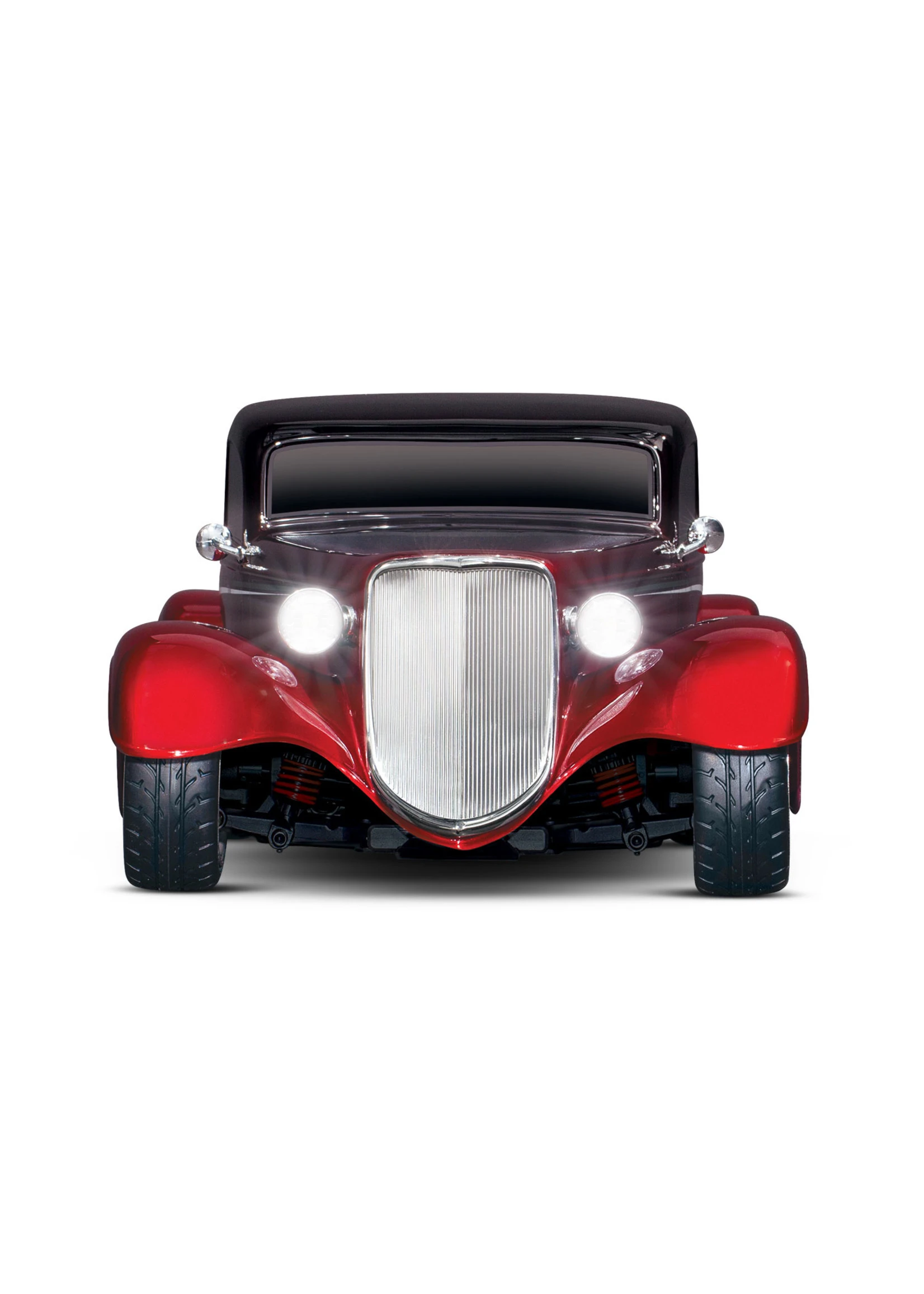 A steeply-raked chrome grille flows into the long narrow hood and aggressively chopped roof. Chrome headlights flank the sculpted fenders with full running boards. Deep, lustrous paint and wild graphics complete the package. The look is pure classic hot rod and Traxxas brings this timeless style to life in 1/10 scale.