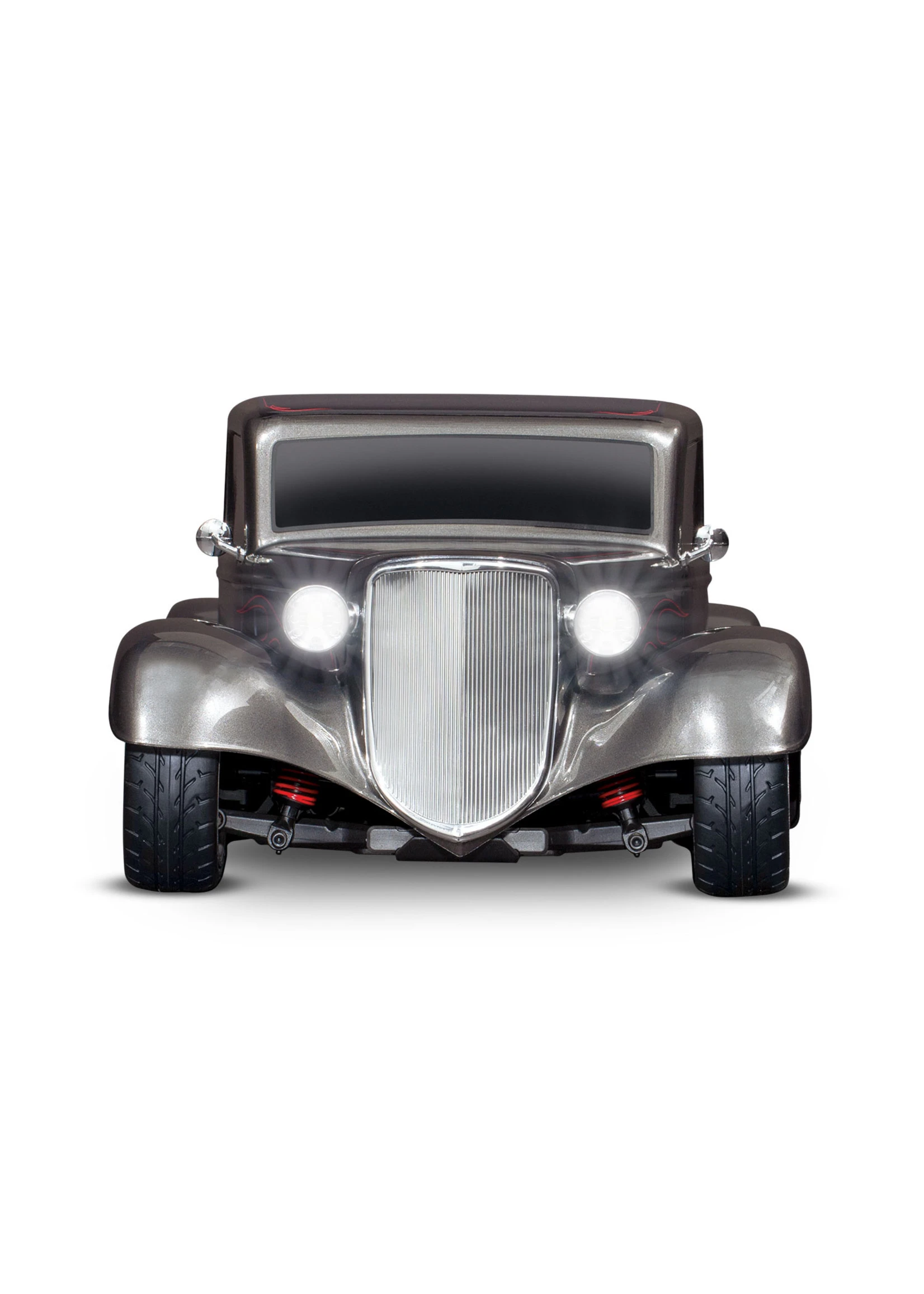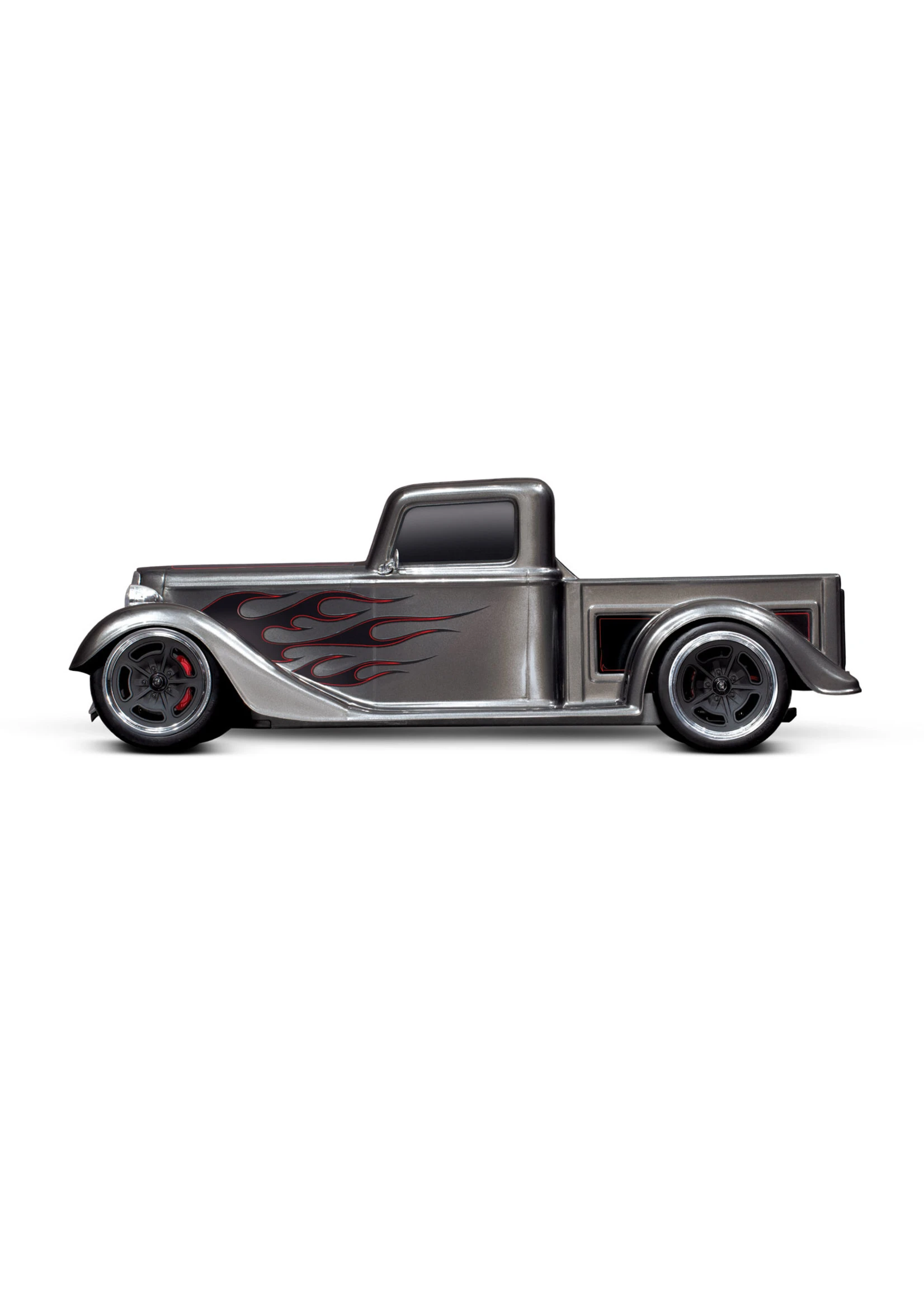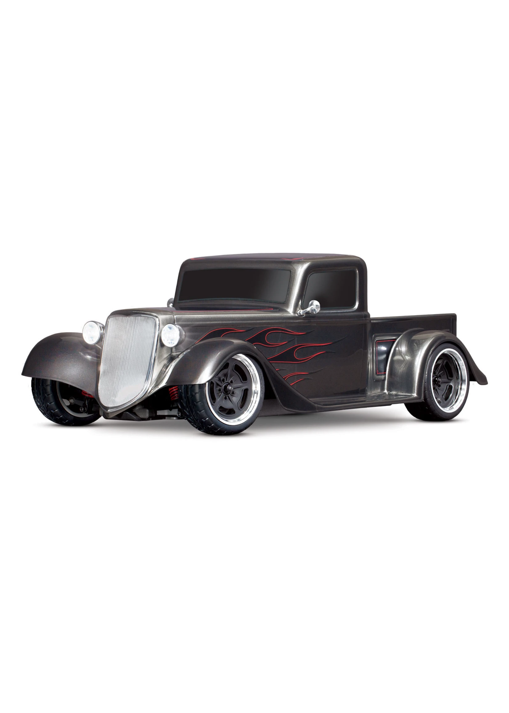 A steeply-raked chrome grille flows into the long narrow hood and aggressively chopped roof. Chrome headlights flank the sculpted fenders with full running boards. Deep, lustrous paint and wild graphics complete the package. The look is pure classic hot rod and Traxxas brings this timeless style to life in 1/10 scale.