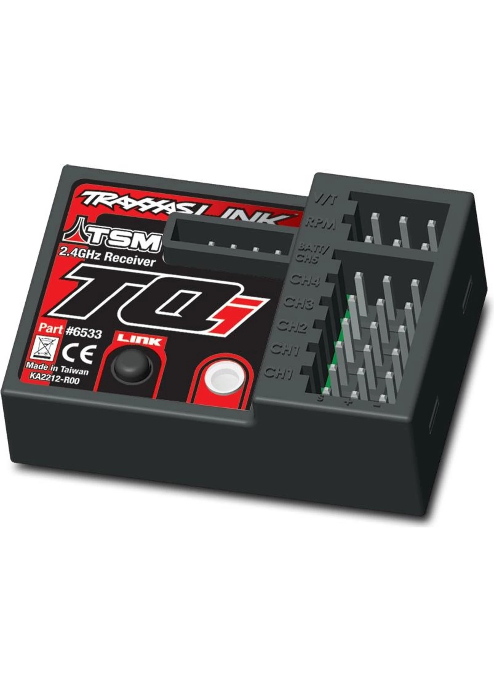 - TQi 2.4GHz transmitter with Traxxas Link Wireless Module and receiver