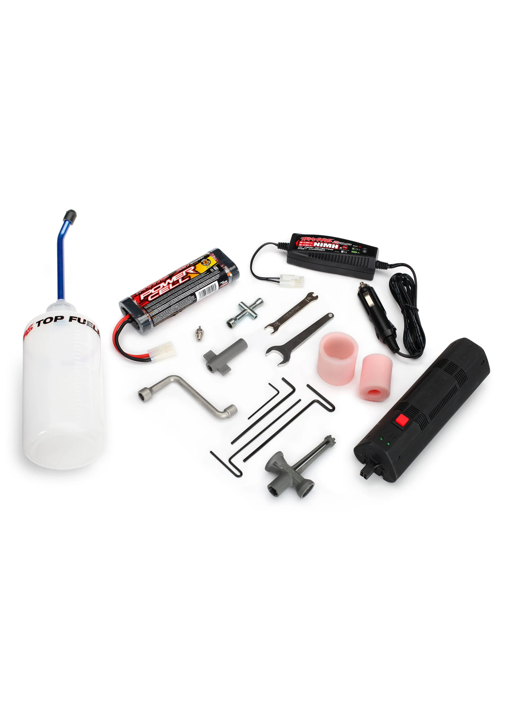 Traxxas Top Fuel® Power Plus™ and 8 AA batteries are all you need to go from the box to the backyard with the Slayer Pro 4X4. The Slayer is fully assembled, with pre-glued tires, a mounted and trimmed ProGraphix body and dialed-in electronics. But we didn’t stop there, a high-quality 6-cell EZ-Start battery is included with a 2-amp DC peak detecting fast charger. A 500 cc fuel bottle is also included for fast fillups, and there’s even a spare glow plug and air filter element to keep you running strong. A precision metric specialty tool set is also included for easy servicing. Almost everything you need to experience nitro short course fun the Traxxas way is already in the box.