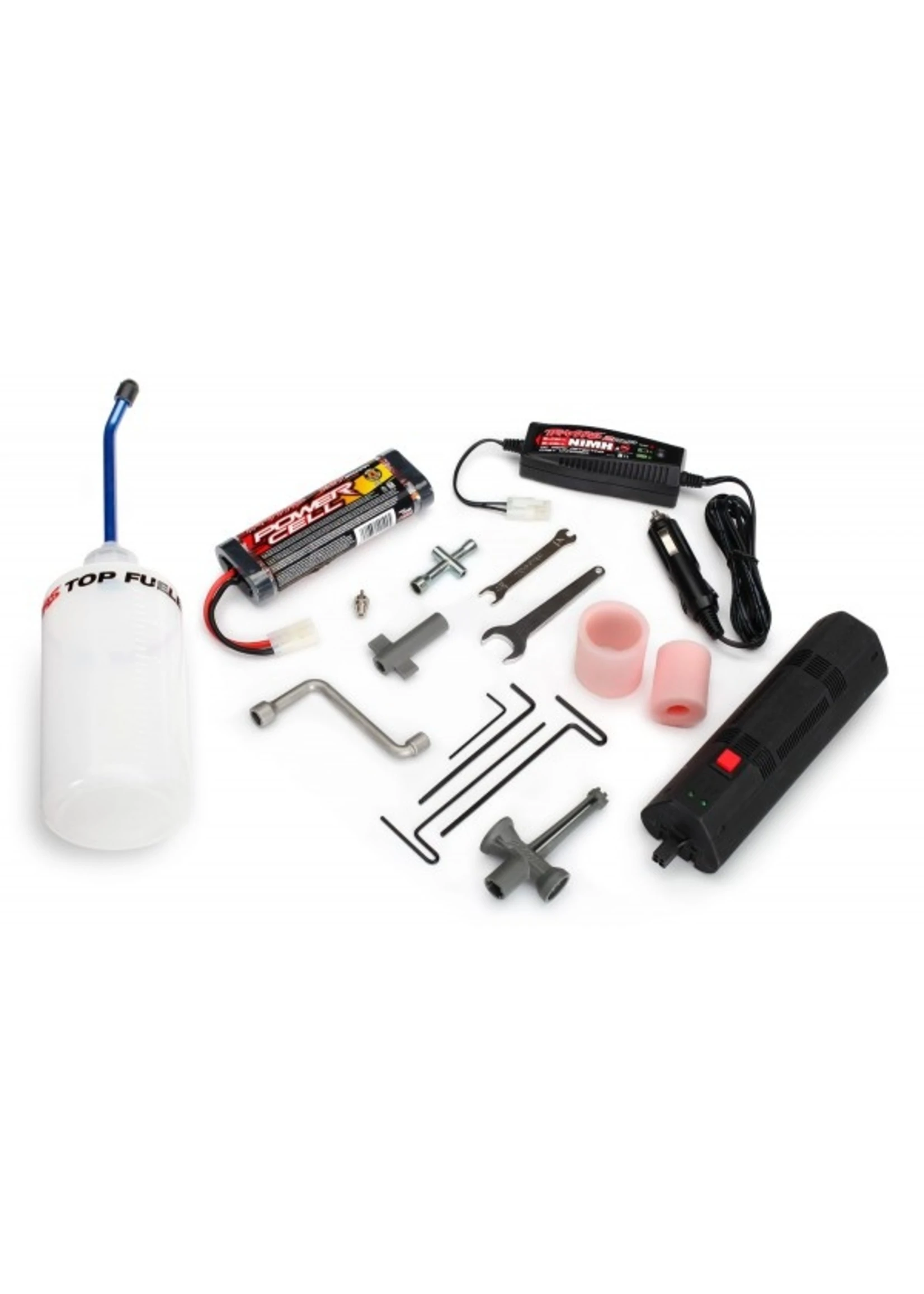- Ready-To-Drive® with included AA battery holder and EZ-Start battery, charger, fuel-filler bottle, spare glow plug, precision tools, and more!