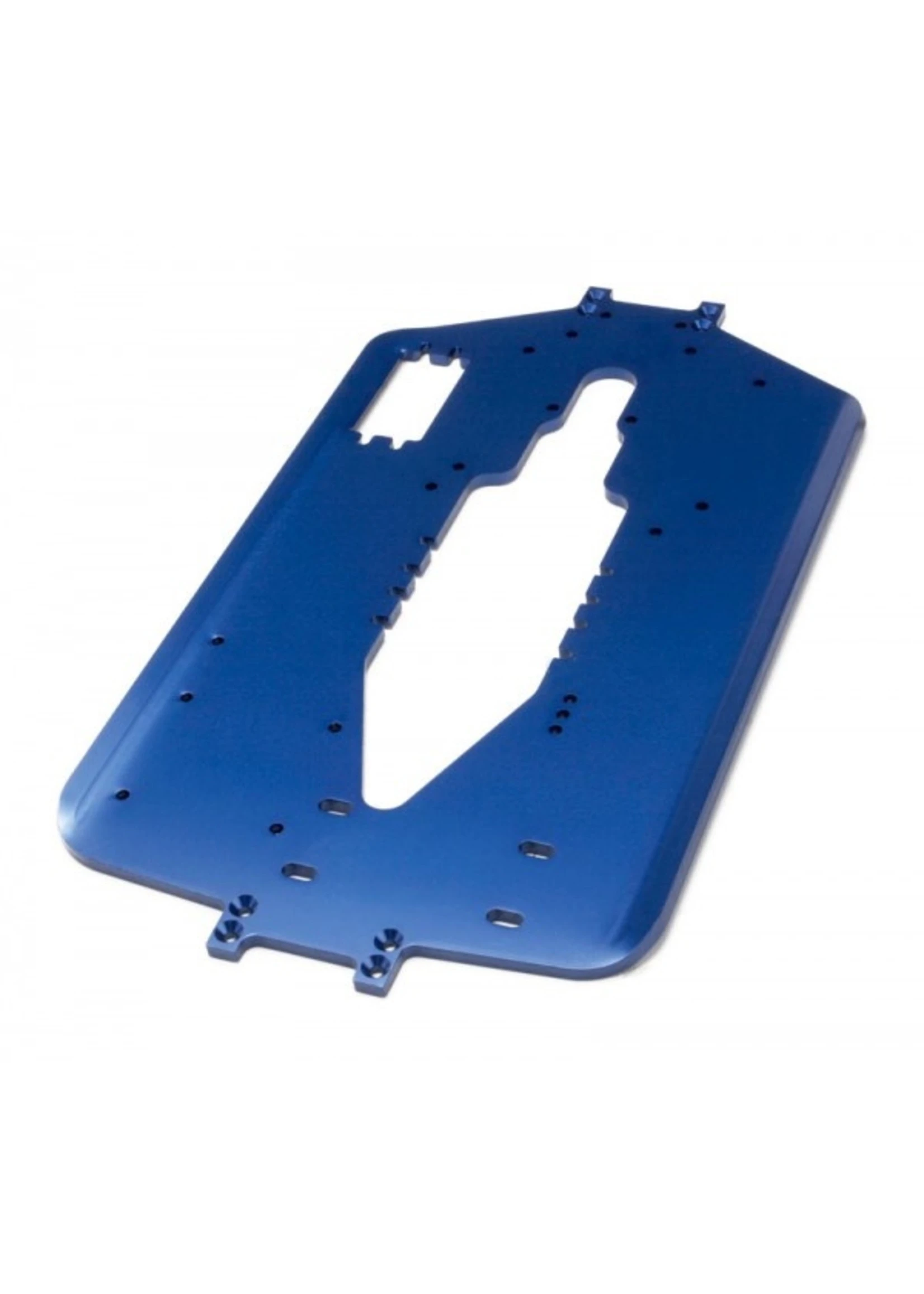 The T-Maxx 3.3 is the biggest Maxx ever. Giant Maxx tires deliver massive grip off-road and at 6.3″ tall, they add increased ground clearance to gobble up deep ruts and overcome huge boulders (be sure to check out the videos!). In the city, urban obstacles such as curbs and stairs beckon for an all-out Maxx assault. Maxx tires come pre-glued to 3.8″ Mirror-Chrome Hurricane wheels. Traxxas engineers equipped the T-Maxx 3.3 with an extended wheelbase (30mm longer) for maximum stability. T-Maxx is able to put more power the ground for even more acceleration and amazing directional control. There’s no skimping when it comes to the chassis. It’s formed from 4mm thick 6061-T6 aluminum and then anodized in brilliant blue. Meaty chassis braces and a rugged skid plate add rock-solid rigidity.