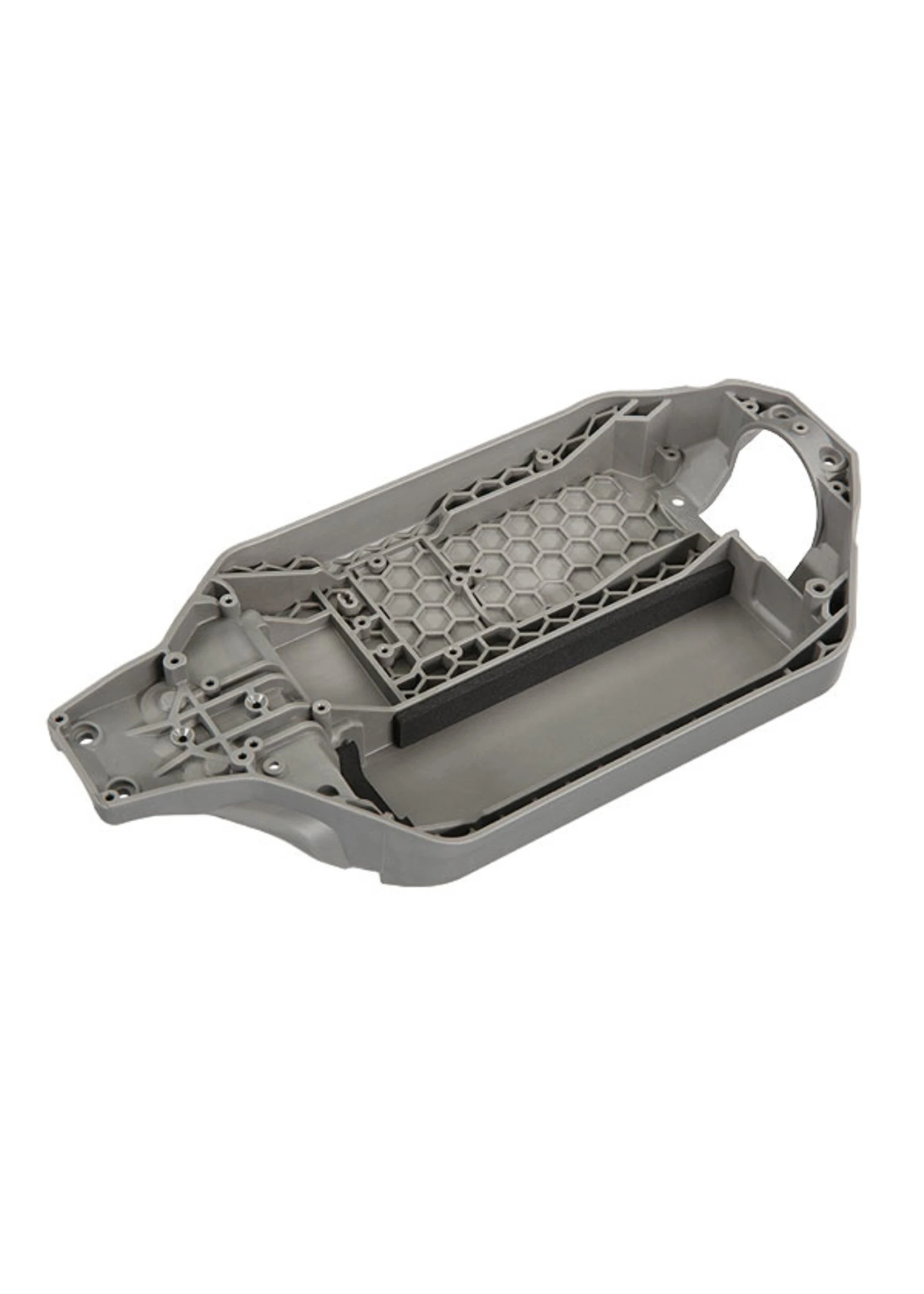 Includes: Chassis (162mm long battery compartment) (fits flat style battery packs) (use only with #7430R front bulkhead & #6726X battery hold-down)