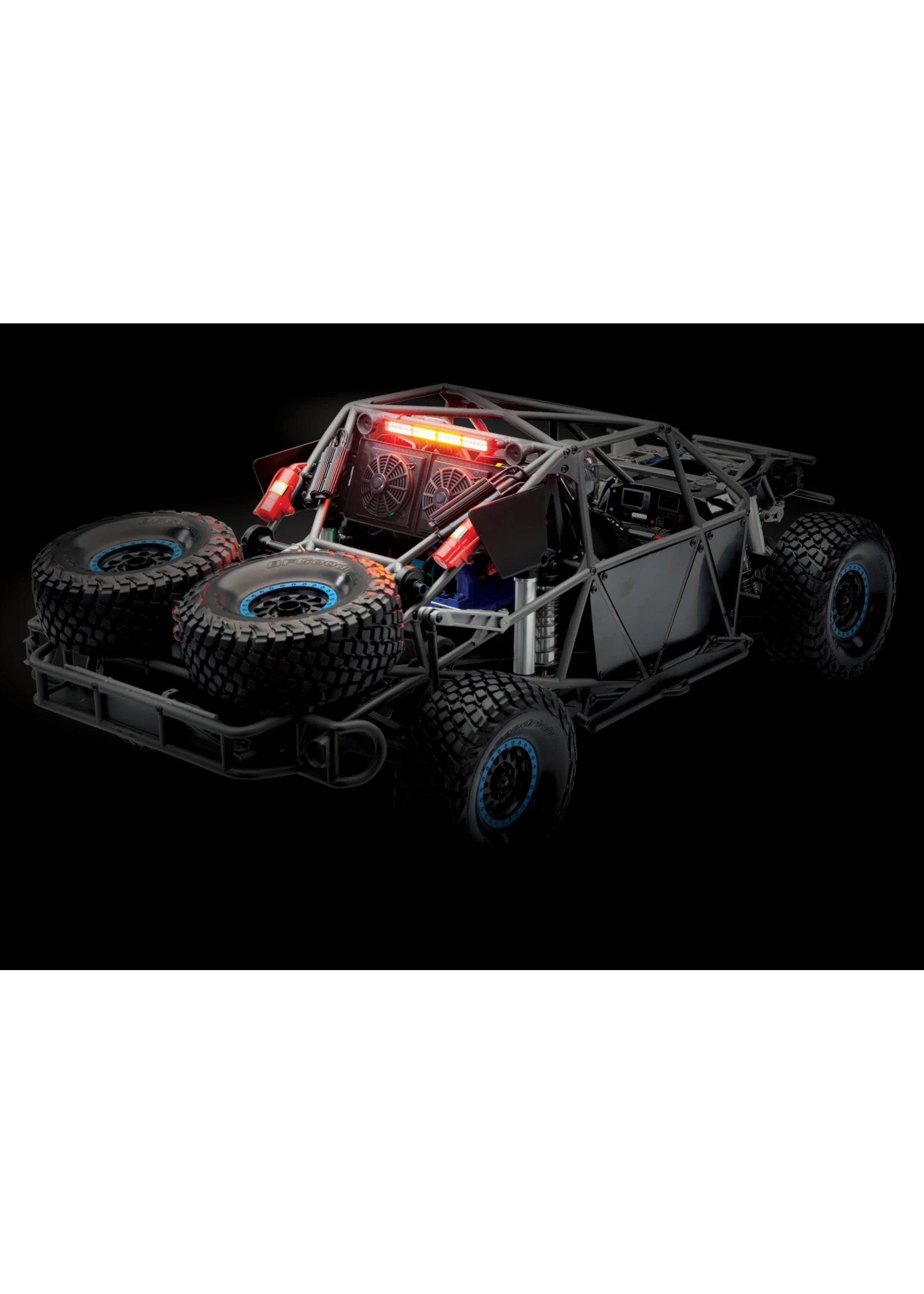The Unlimited Desert Racer combines Pro-Scale™ performance with extreme 6s power for the most thrilling RC driving experience possible. The UDR™ drives like a real desert truck because it’s engineered like a real desert truck. A 4-link solid rear axle provides huge suspension travel with authentic driving dynamics. From the cantilever sway bars and high-voltage lighting system to the GTR shocks, Traxxas accurately reproduced a true desert racer in both form and function.